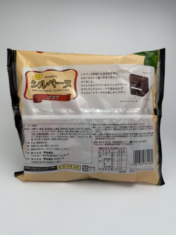 Mini Sylveine Cocoa are bite-sized Japanese chocolate sandwich cakes featuring a rich cocoa twist on the classic Sylveine. It is created by Bourbon. This mini version offers the same elegant texture and indulgent taste in a smaller, easy-to-enjoy size, perfect for quick treats and sharing.
