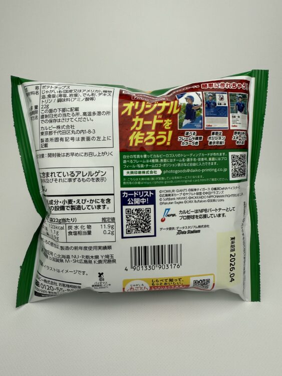 2025 Pro Baseball Chips are one of Japan’s most iconic collectible snack items, enjoyed by both NPB baseball fans and collectors. They are produced by Calbee. Each bag features lightly salted potato chips with a crisp texture and simple, addictive flavor—perfect for casual snacking.