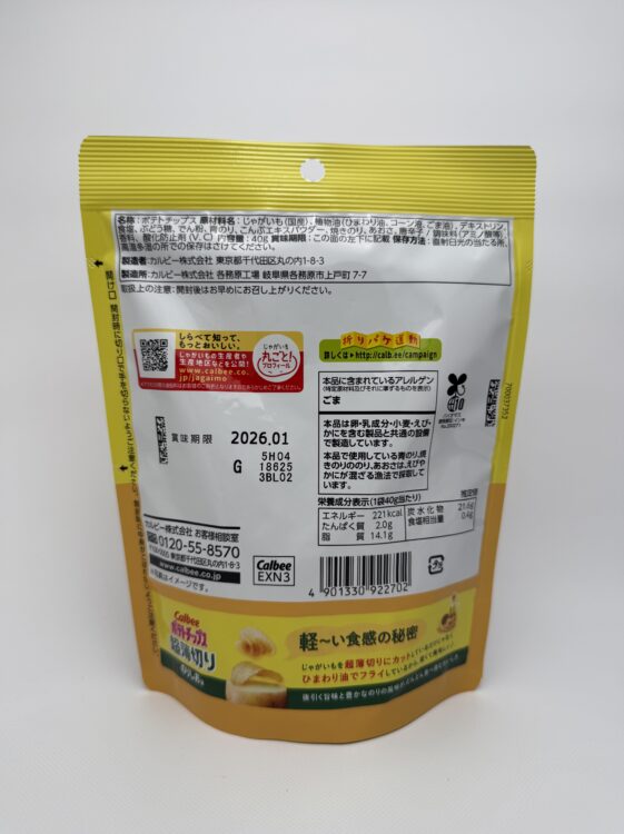 Potato Chips Extra Thin Cut Seaweed & Salt Flavor feature an ultra-light, crisp texture that lets the savory flavor of seaweed and salt shine through. It is released by Calbee. Each chip is delicately sliced and seasoned with aromatic aonori (green seaweed) and just the right amount of salt for a clean, refreshing taste.