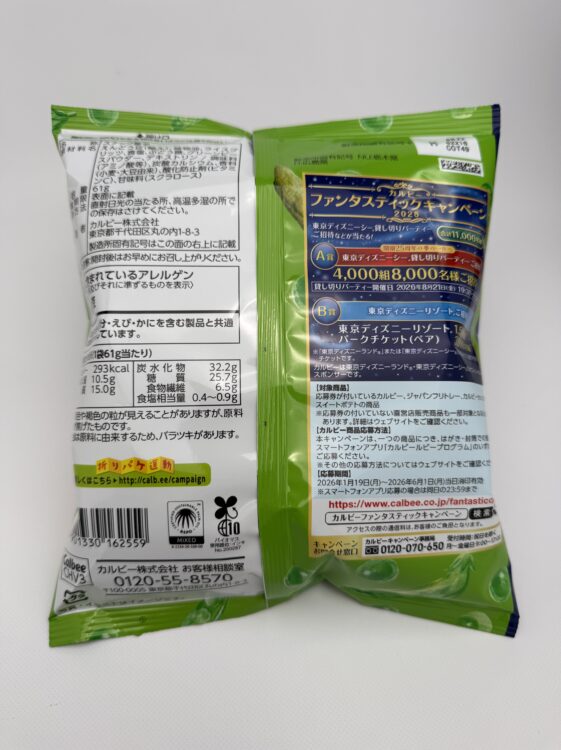 Sayaendo Salt is a uniquely light and crispy Japanese snack made with whole green peas. It is produced by Calbee. By using peas in their entirety, this snack captures the natural sweetness and rich umami of the beans, delivering an authentic vegetable-based flavor in every bite.