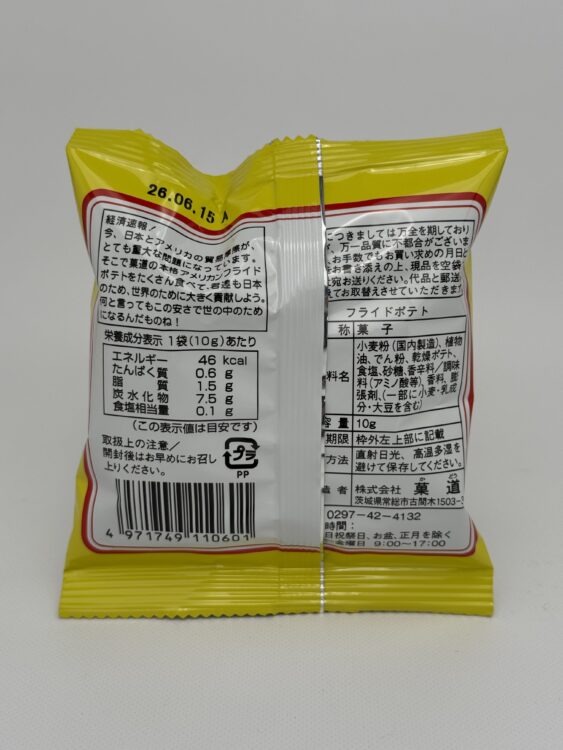 Each pack is a convenient, small portion size, perfect for quick snacking anytime. With its crunchy texture and nostalgic appeal, this fried potato snack is a popular choice among both kids and adults in Japan.