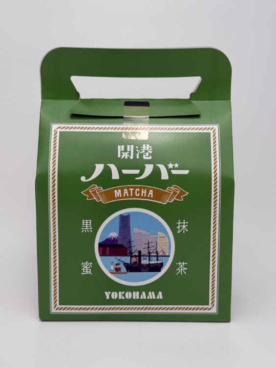 Kaikou Harbor Matcha Kuromitsu is one of Yokohama’s most elegant souvenir sweets, and a proud addition to the beloved Harbor cake series. It is produced by Ariake. This ship-shaped cake celebrates Yokohama’s rich history as a port city that opened to the world in 1859 — when tea was one of the city’s most prized exports.