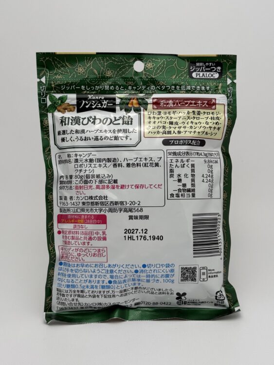 Non-Sugar Wakan Biwa Throat Candy is a throat candy from Kanro made with carefully selected traditional herbal extracts, designed to gently soothe and moisturize the throat. Rooted in the wisdom of Japanese and Chinese herbal traditions (wakan), this candy brings together the natural goodness of loquat (biwa) and herb extracts for a comforting, time-honored remedy in candy form.