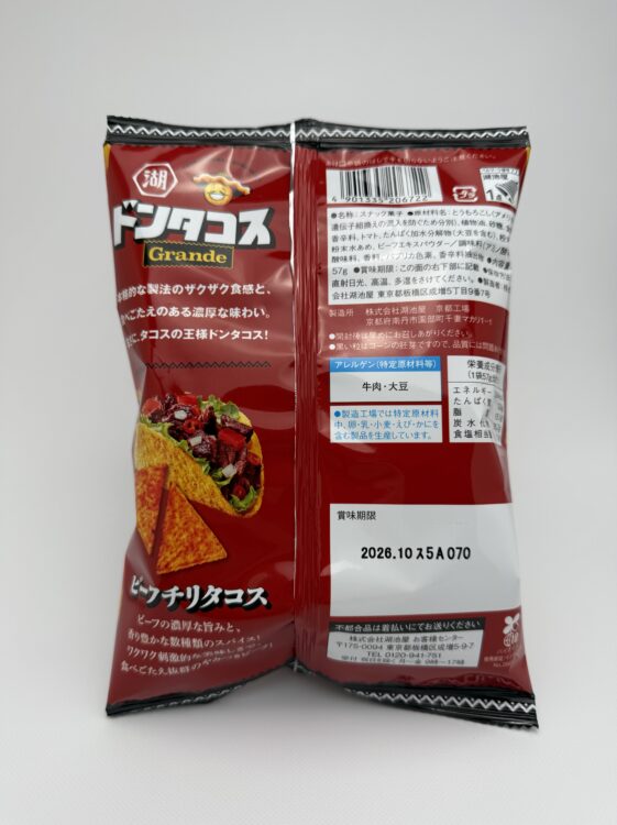 Dontacos Beef Chili Taco is a bold Japanese snack inspired by the rich taste of classic tacos. It is produced by Koikeya. Crafted to deliver a hearty crunch, each chip features a thick, satisfying texture that makes every bite feel substantial and enjoyable.