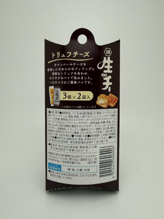 Nama-Chee Truffle Cheese is a luxurious crispy pie snack featuring the exquisite harmony of aromatic truffle and rich Camembert cheese. It is released by Koikeya. The deep, earthy fragrance of truffle blends beautifully with the creamy, mellow character of Camembert, creating an indulgent flavor that fills your mouth with every bite.