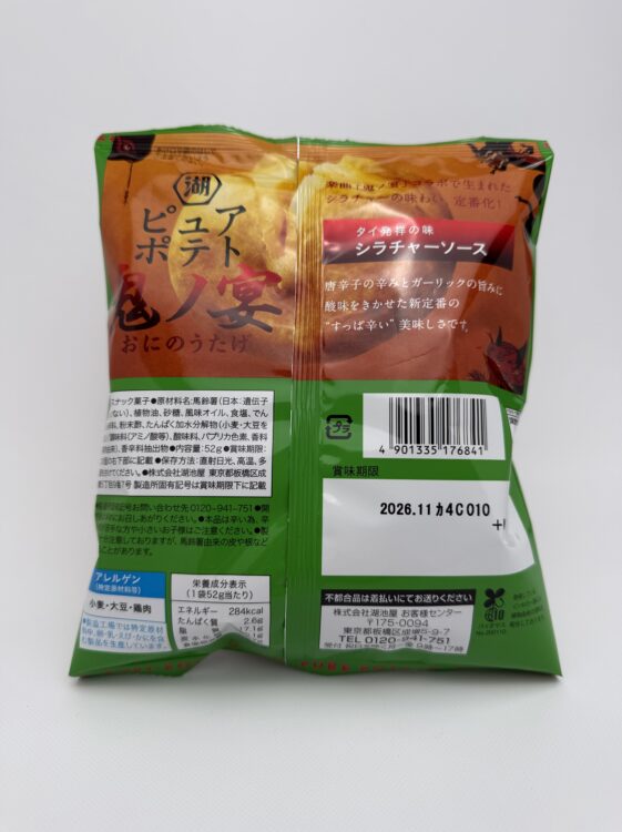 The sriracha sauce seasoning brings the signature “tangy-spicy” taste of the Thai-origin chili sauce — a well-balanced combination of chili heat, garlic umami, a hint of sweetness, and bright acidity that keeps you coming back for more. It is produced by Koikeya.