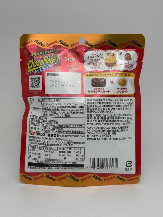 Choco Flakes Milk Chocolate are crunchy corn flakes coated with smooth, melt-in-your-mouth chocolate for an irresistibly addictive texture and taste. They are produced by Nissin. First released in 1968, this long-selling Japanese snack has remained popular for generations.