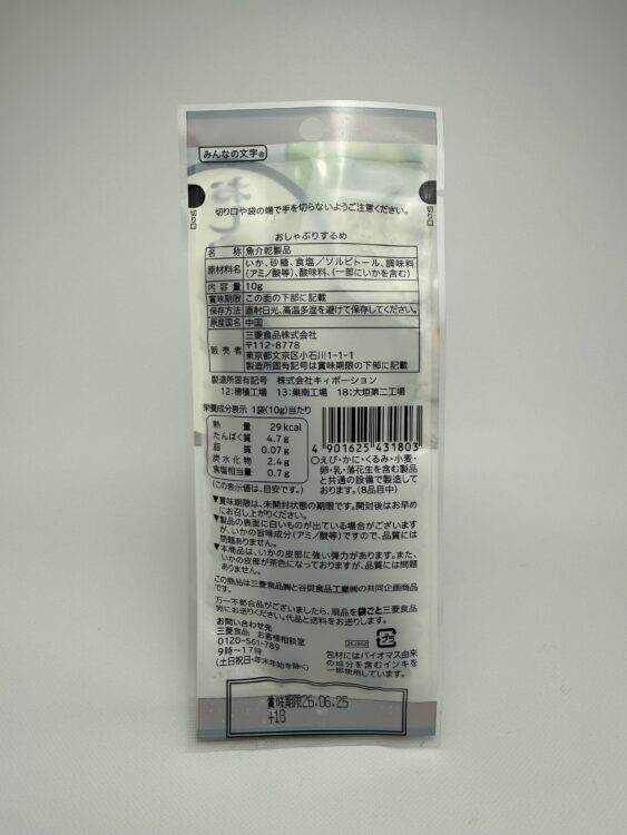 Oshaburi Surume is a classic Japanese dried squid snack made from thin sheets of squid that are carefully cut into convenient stick shapes. It is produced by Mitsubishi Shokuhin. This traditional seafood treat is known for its naturally rich umami flavor and satisfying chew.