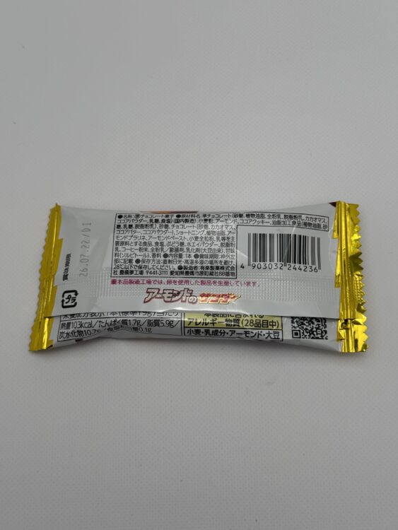 Almond Thunder is a chocolate crunch bar created to showcase the classic and irresistible combination of almonds and chocolate. It is produced by Yuraku. Crafted using three types of almond ingredients — roasted almonds, almond praline, and almond paste — this bar delivers a well-balanced experience of aroma, texture, and flavor in every bite.